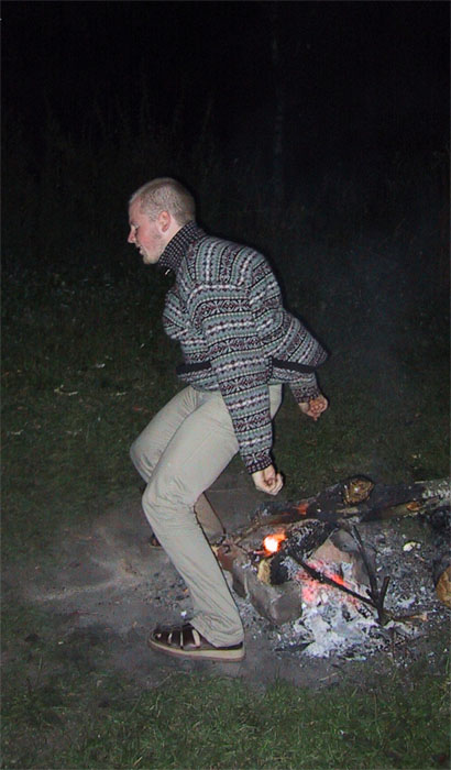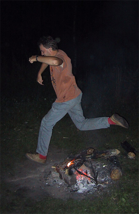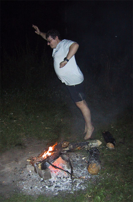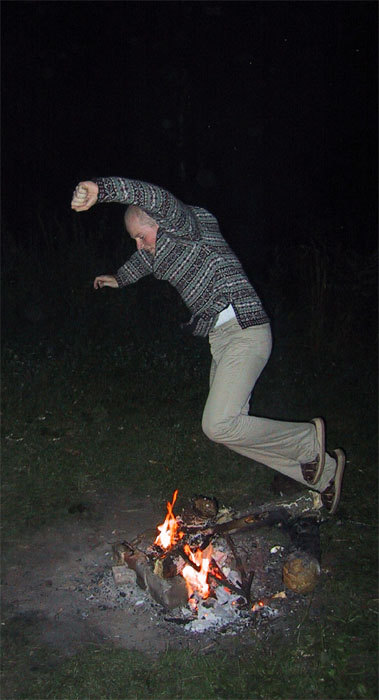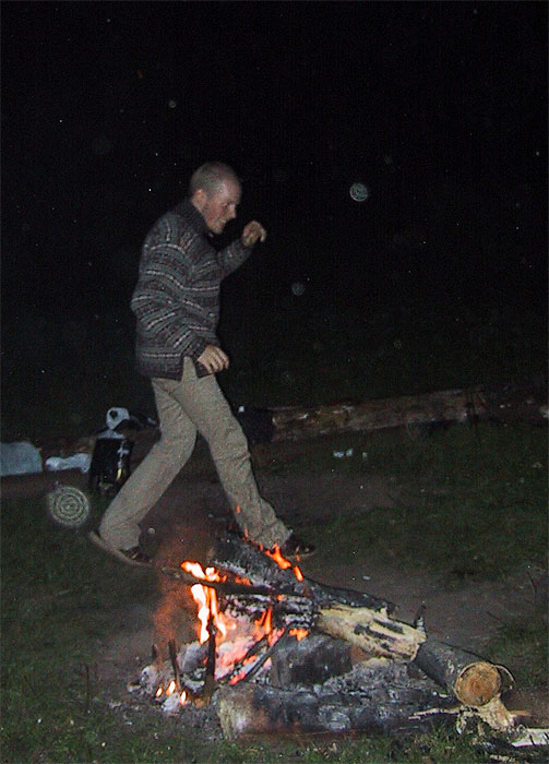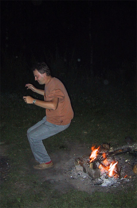 - Дима прыгнул через костерок, и думал, что на этом все кончится. Ан нет. Я тоже пошла попробовать. Только у меня не получается. Хоть обскачись.