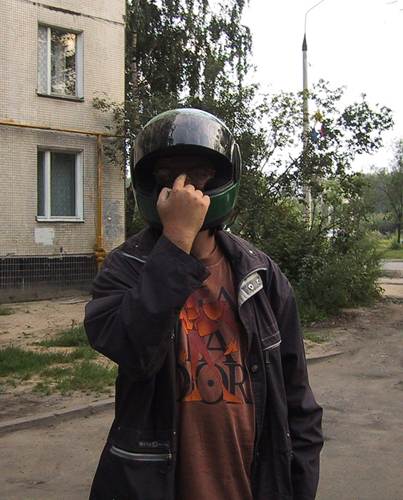 - Пока еще светло, меряем раллевые шлемы.
